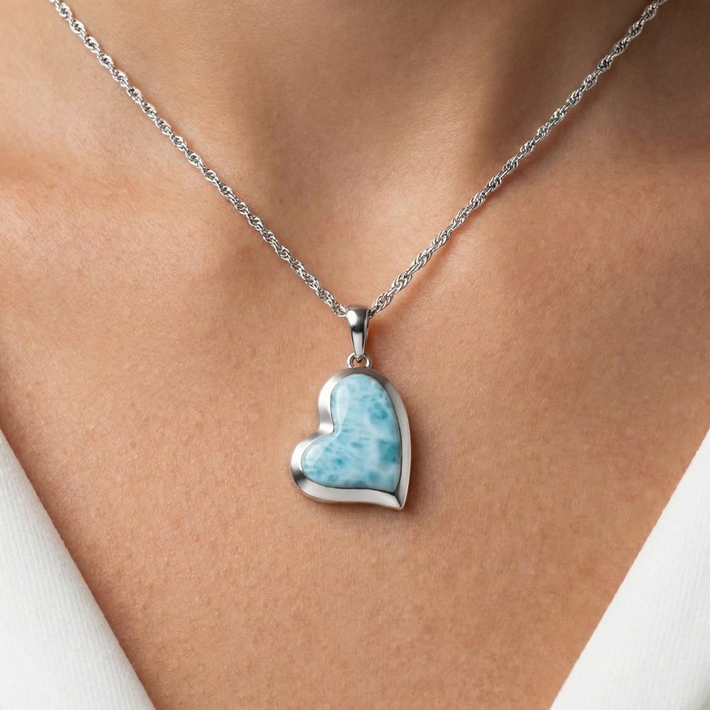 Wear your heart on a string—and keep the ocean close to it. The Floating Heart Silver Necklace is designed to move with you, featuring a stunning heart-shaped Larimar gemstone that glides playfully along a sterling silver chain. It’s a modern, airy take on a classic symbol of love, capturing the serene blues of the Caribbean in a piece that feels weightless to wear.