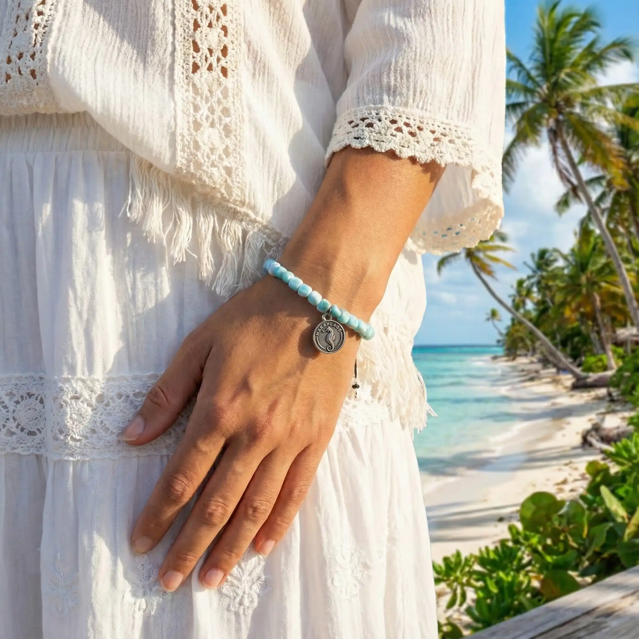 Dive into coastal elegance with the Marahlago Seahorse Breeze Bracelet, a stunning accessory crafted to evoke the serene beauty of the ocean.